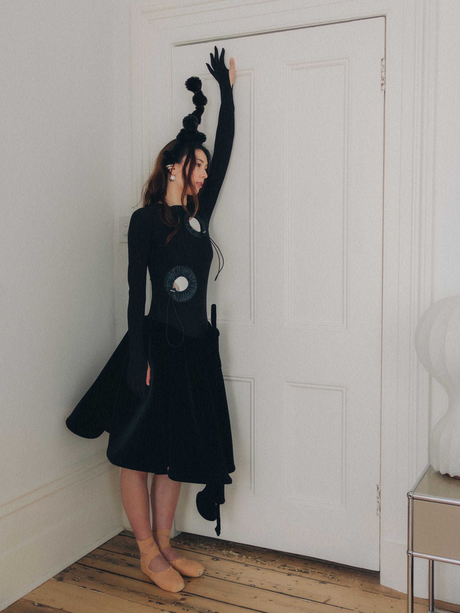 Featured Tendu Bodysuit in Black with Moth Skirt.